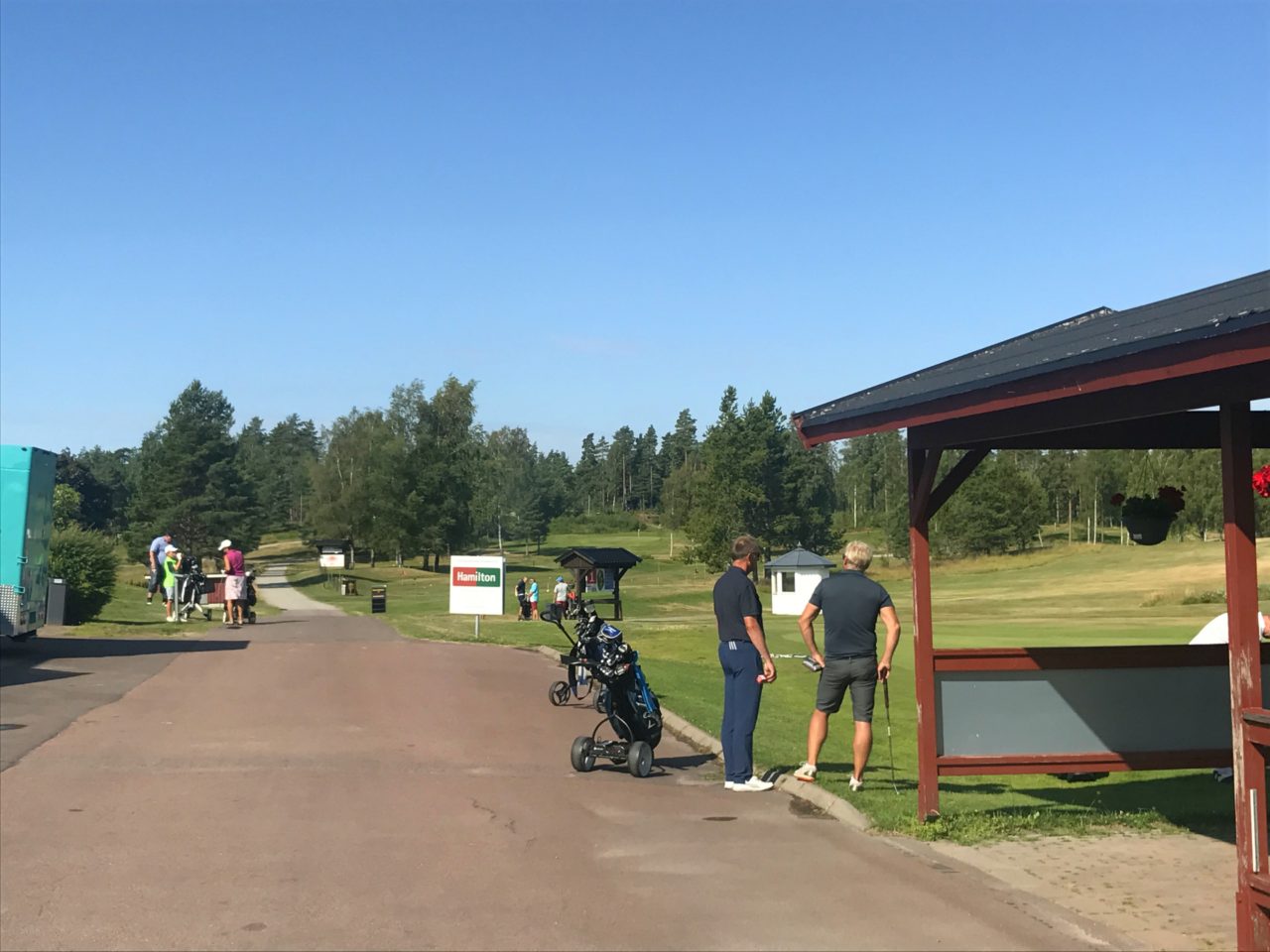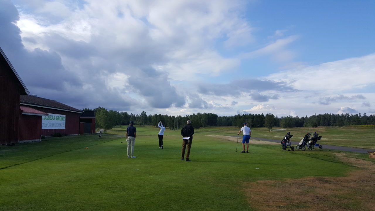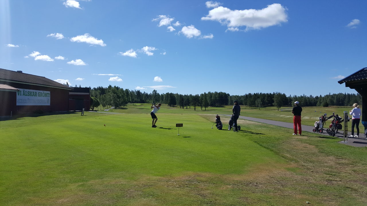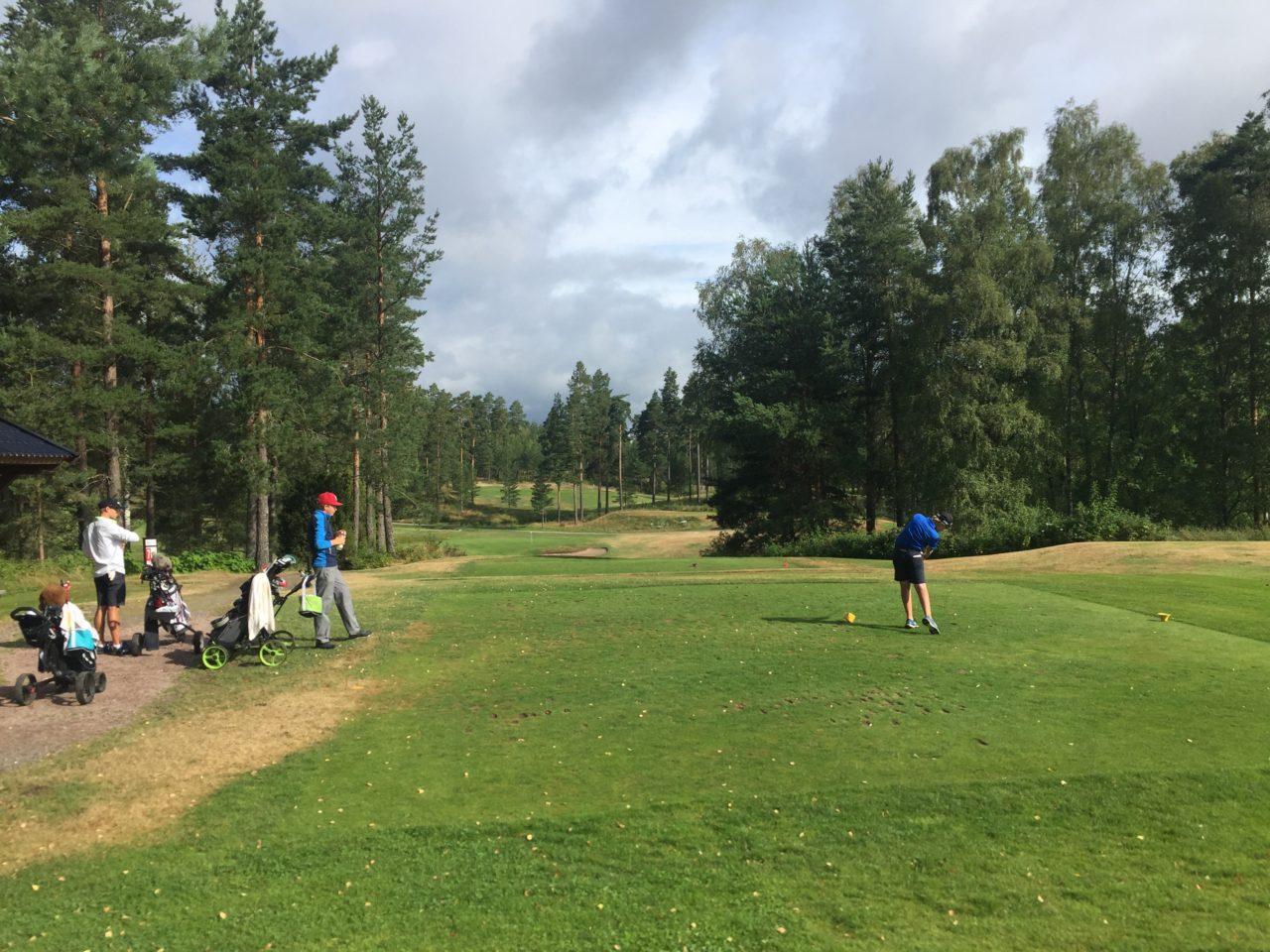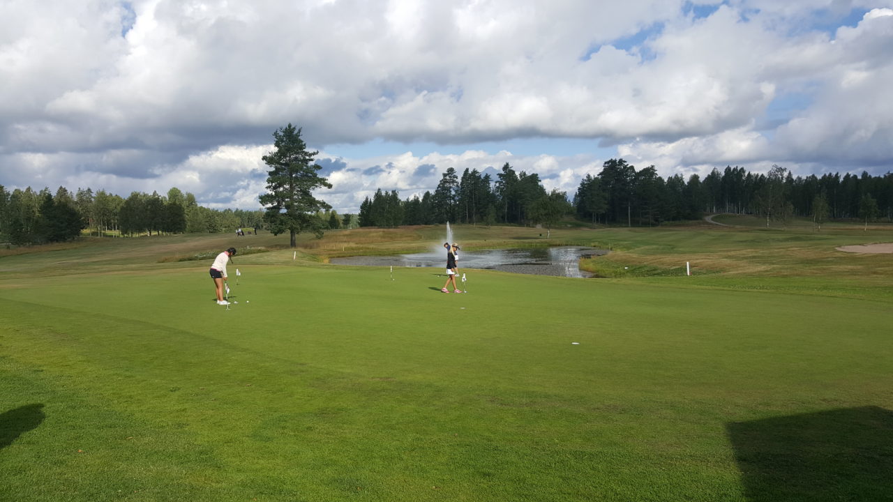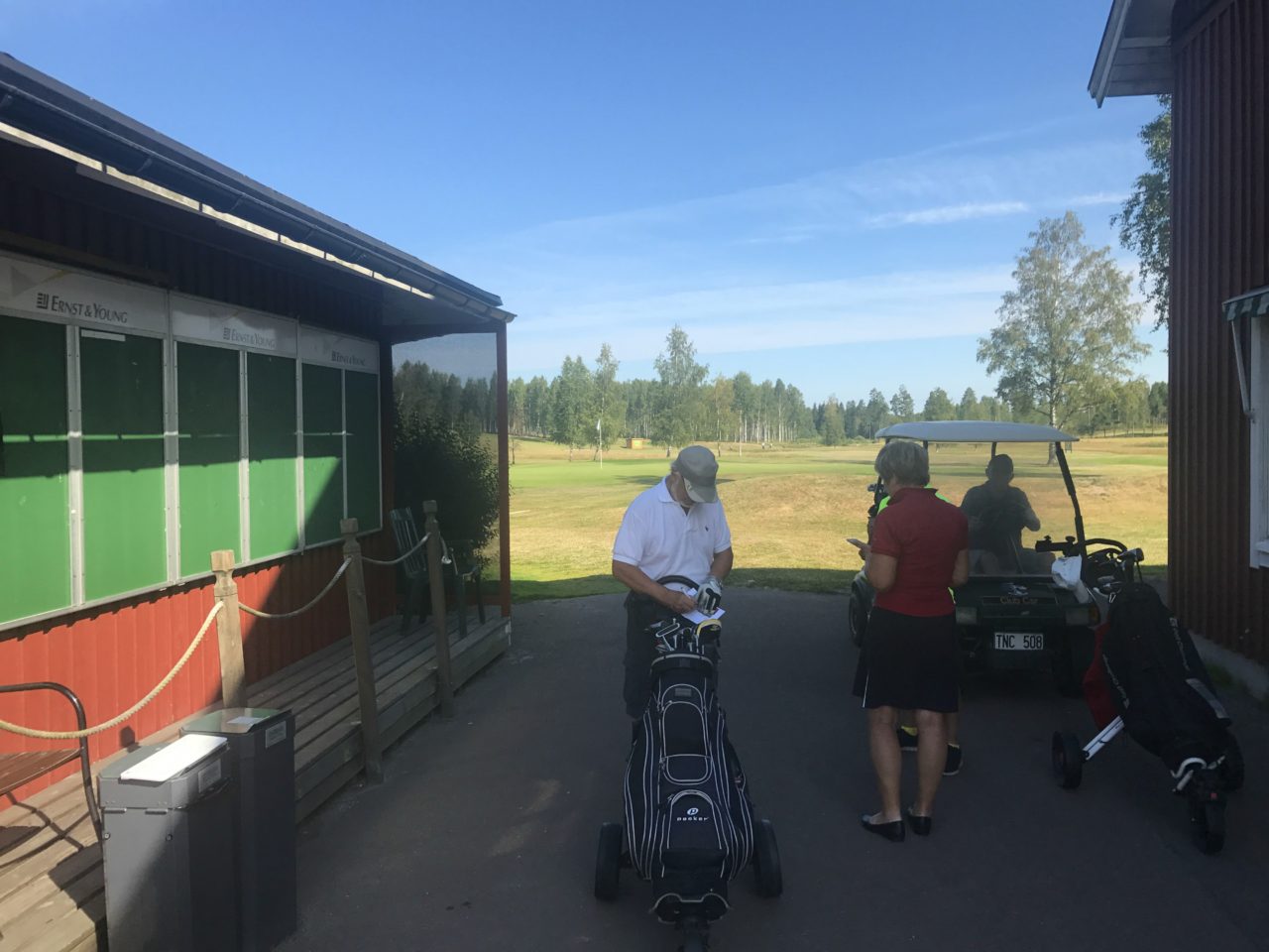 Idag har vi finalen på Ekebygolfen här på Karlstad golfklubb. Det är totalt 44 lag som deltar i A-klass och B-klass. De spelar en foursome poängbogey tävling i par.