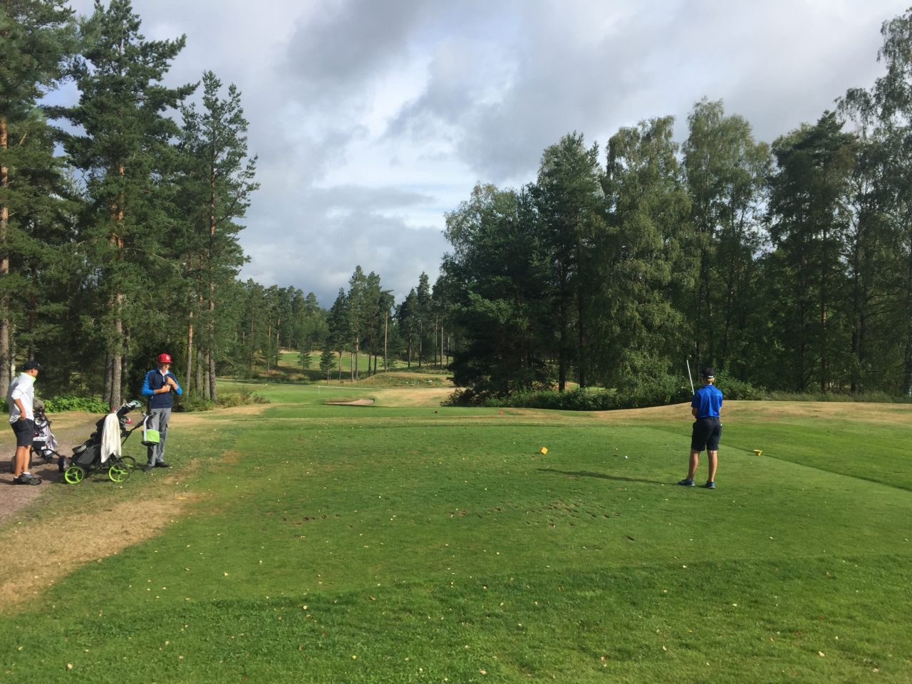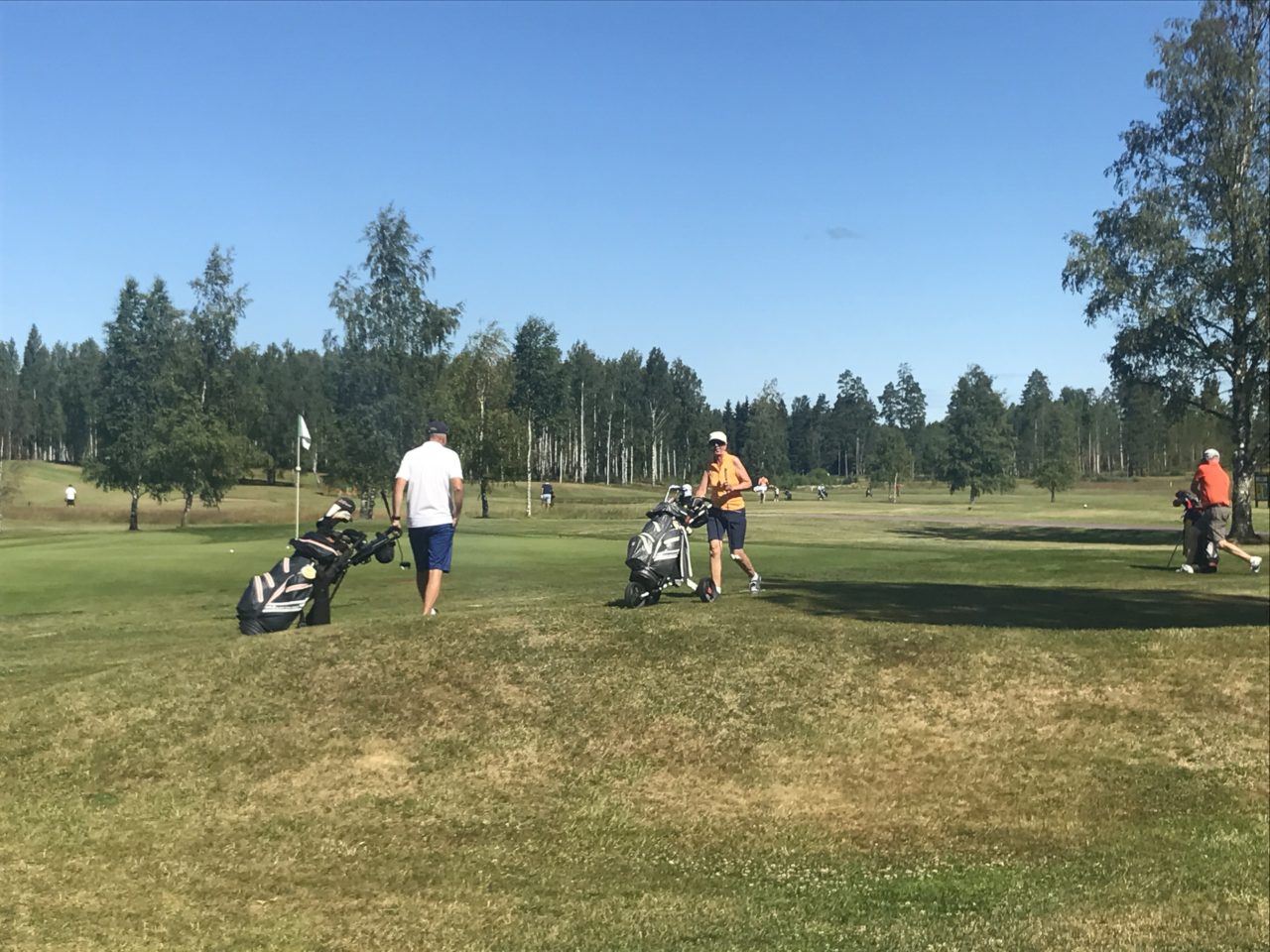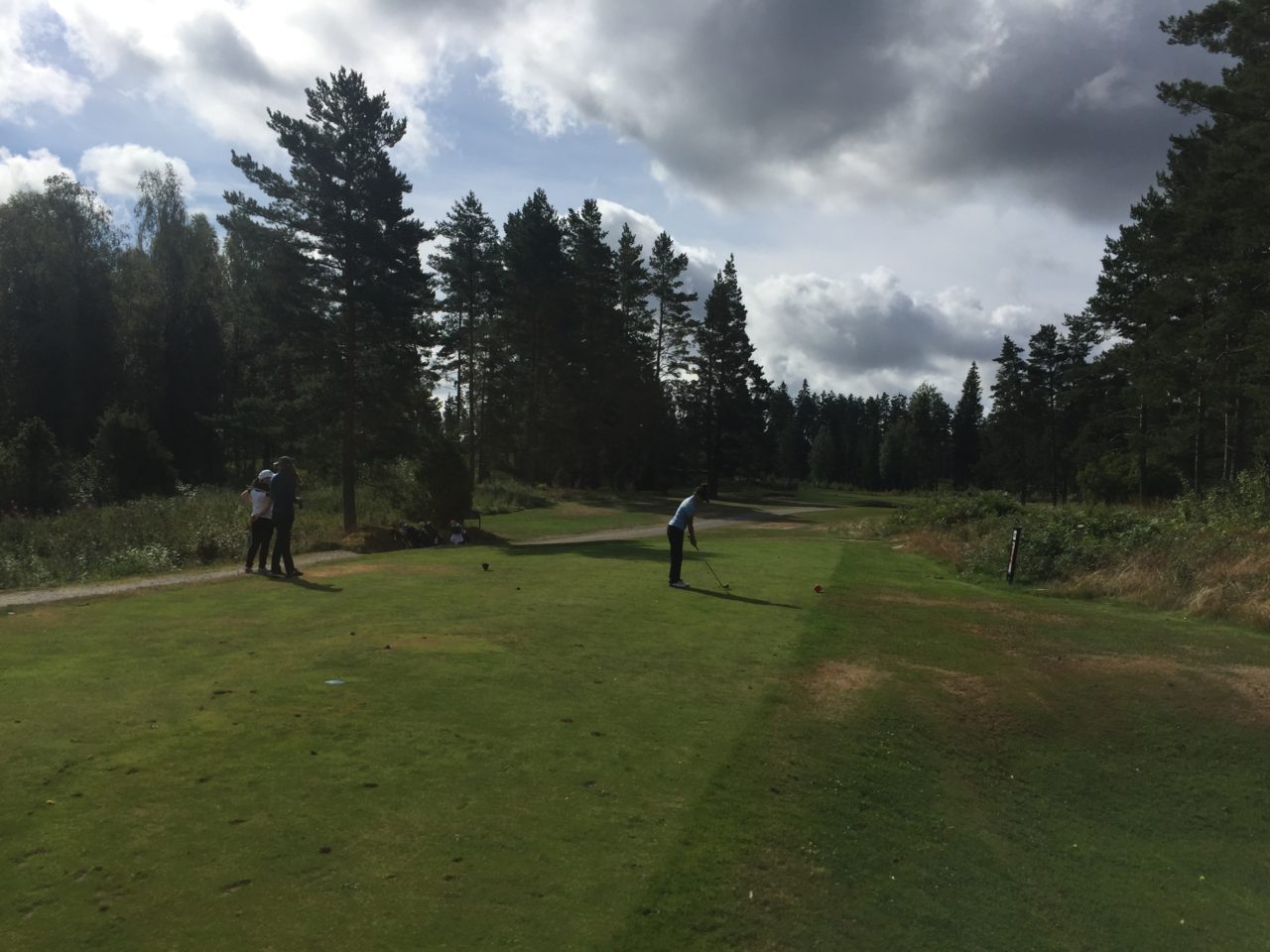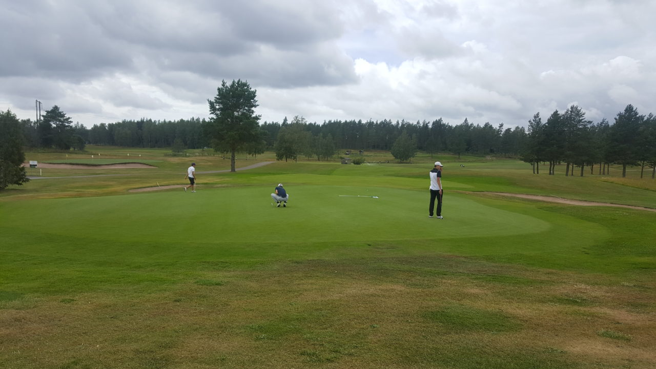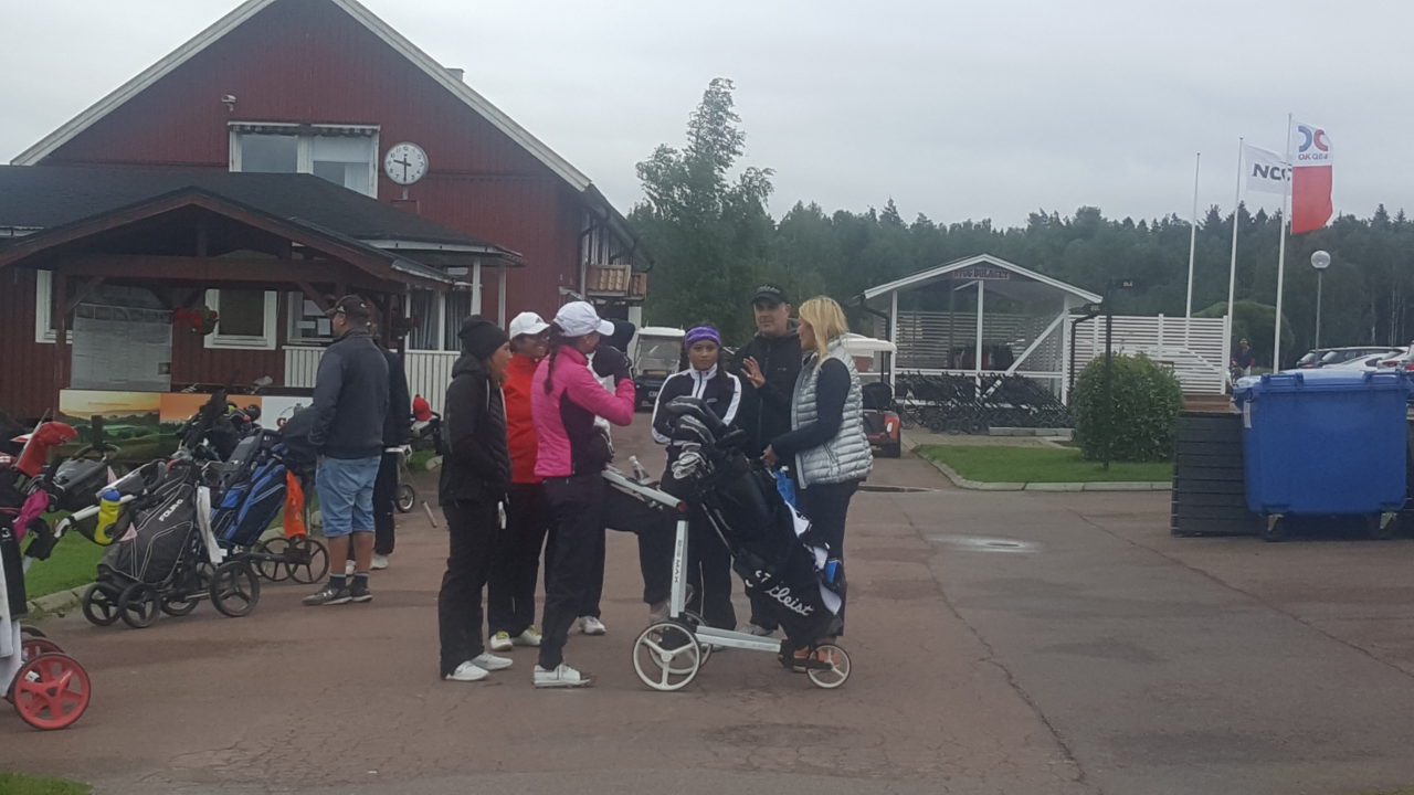 Idag har vi finalen på Ekebygolfen här på Karlstad golfklubb. Det är totalt 44 lag som deltar i A-klass och B-klass. De spelar en foursome poängbogey tävling i par.