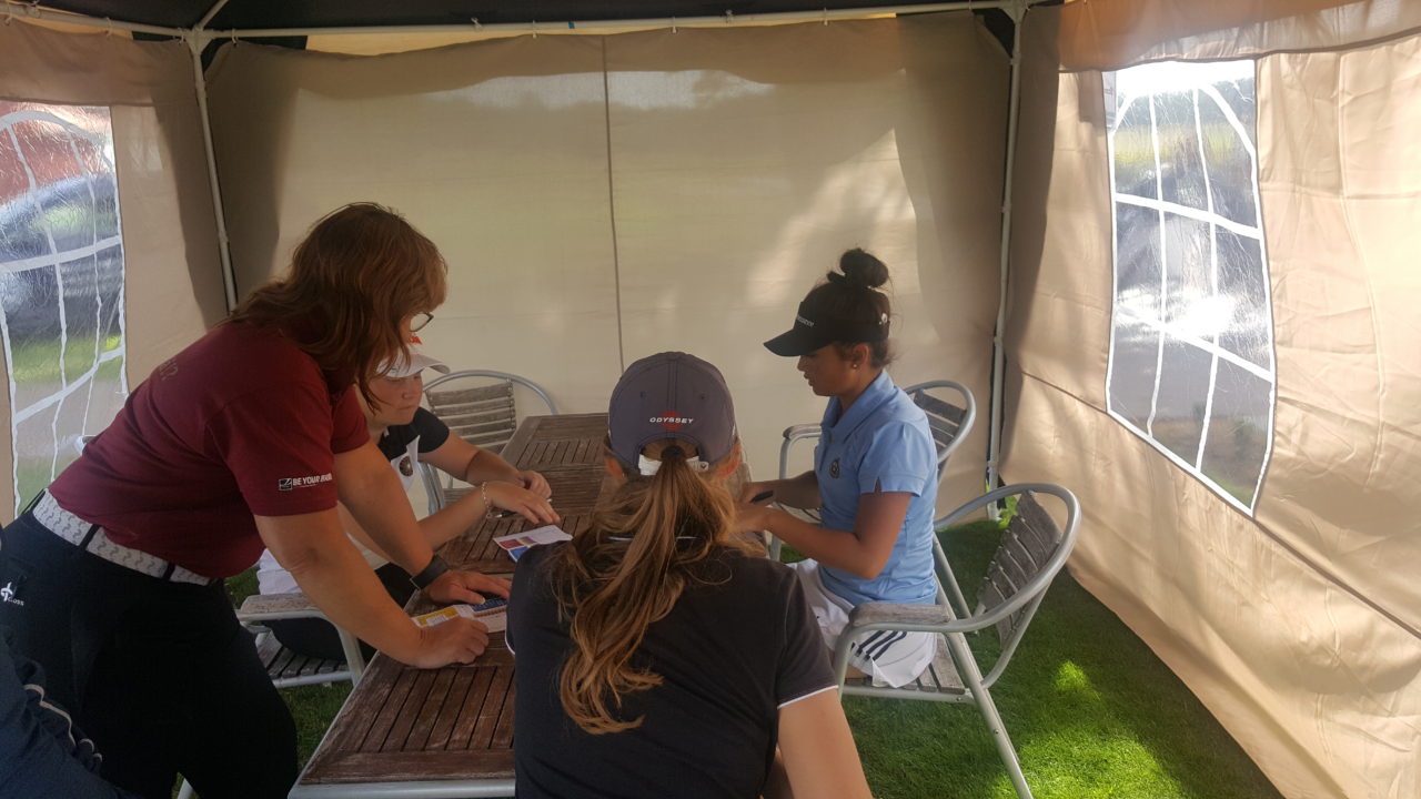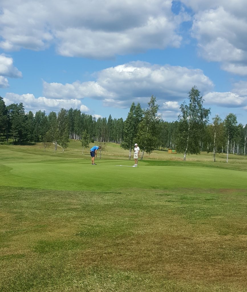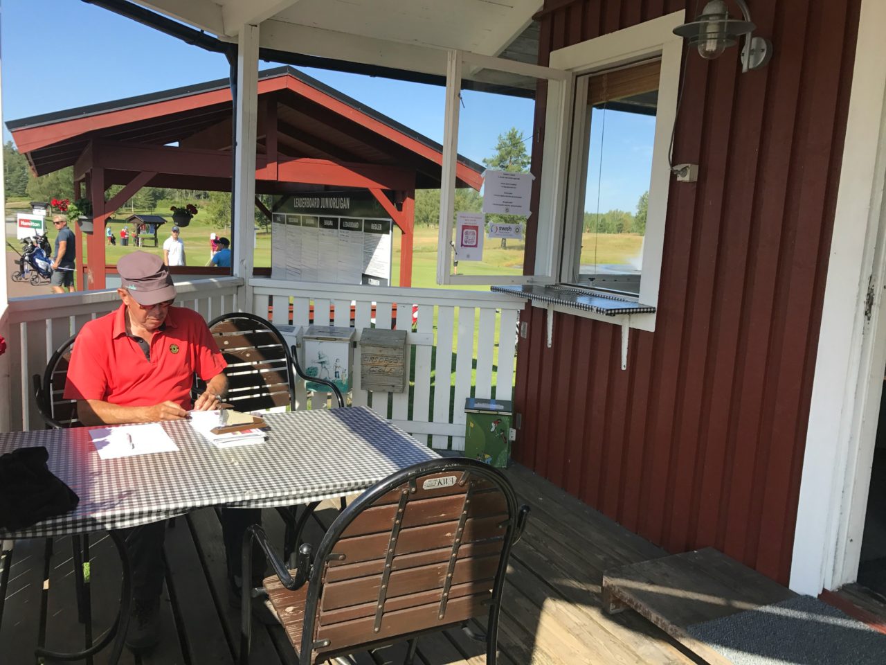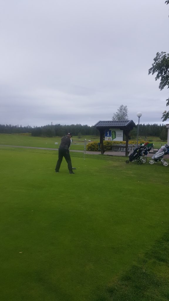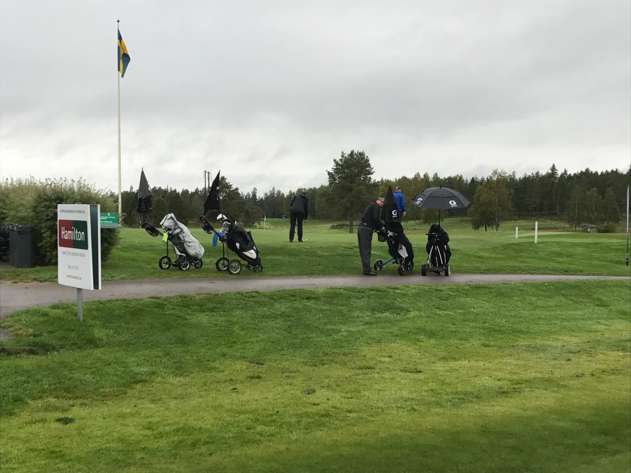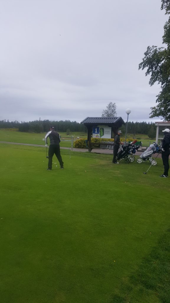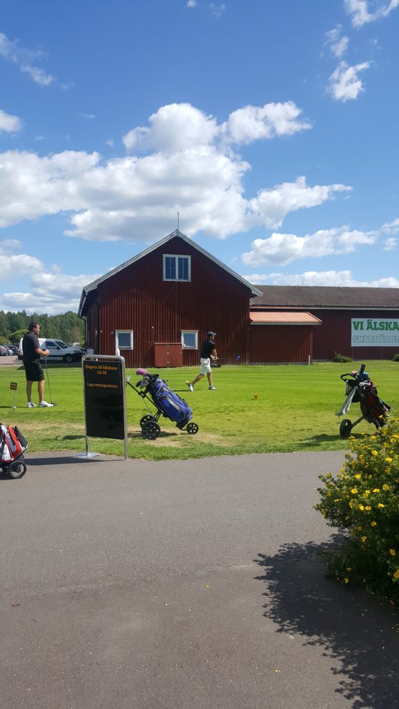 Idag har vi finalen på Ekebygolfen här på Karlstad golfklubb. Det är totalt 44 lag som deltar i A-klass och B-klass. De spelar en foursome poängbogey tävling i par.