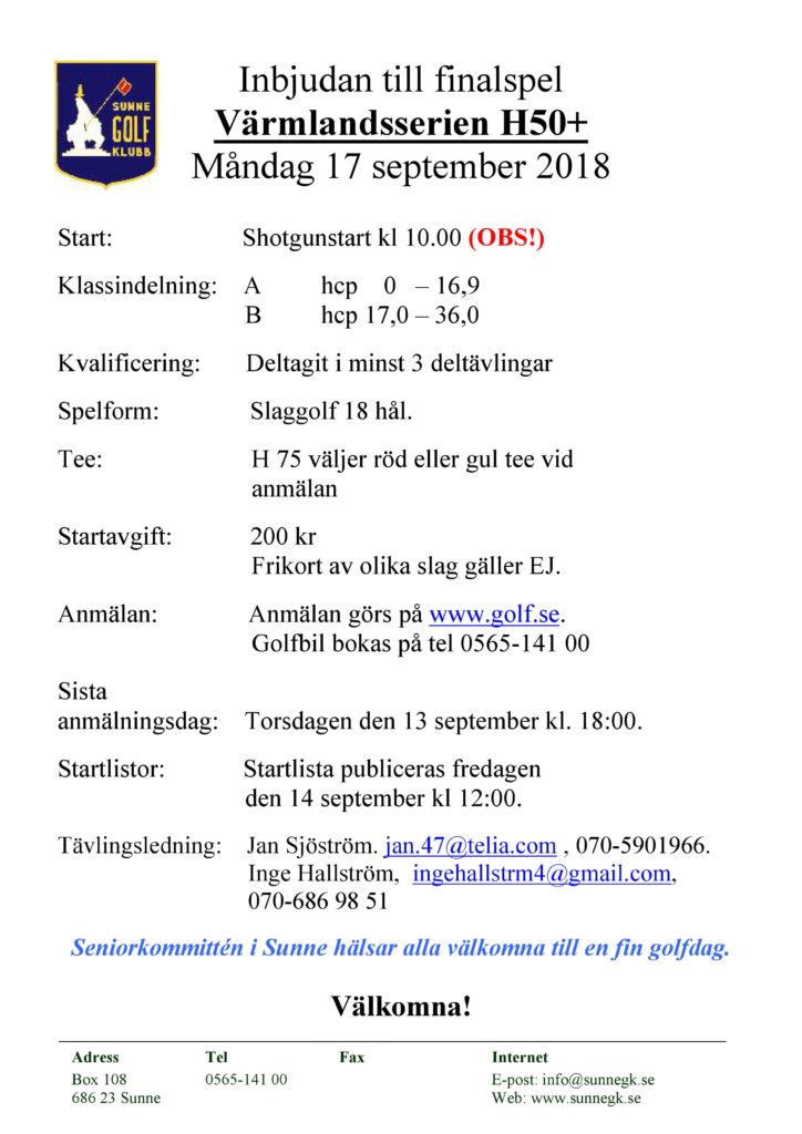 Den 17 september är det dags för finalen på Sunne Golfkubb för H50+.